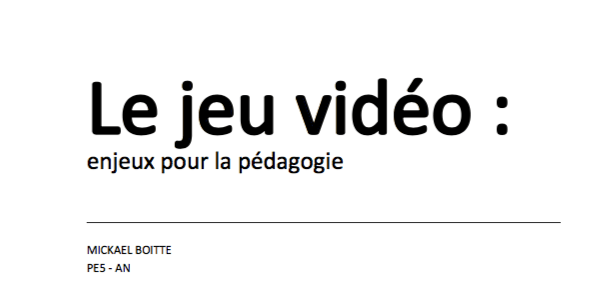Pour finaliser ma Master à ARTS², j'ai rédigé un mémoire concernant les enjeux pédagogiques du jeu vidéo. Vous pouvez le consulter librement ici : Jeu…